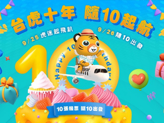 「台虎十年、隨10起航」。今(2024)年9月26日正式迎來開航10週年的台灣虎航,今(10)日宣布將於9月份推出...